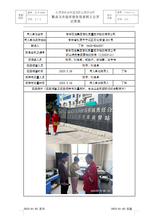 下一篇:中国石油天然气股份有限公司吉林油田分公司松原采气厂职业病危害因素检测报告(ZJ2025-09)