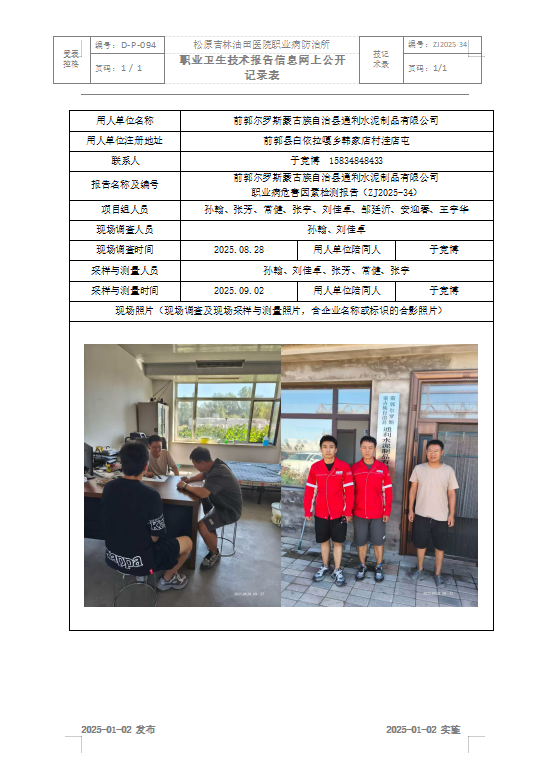 前郭尔罗斯蒙古族自治县通利水泥制品有限公司职业病危害因素检测报告(ZJ2025-34)