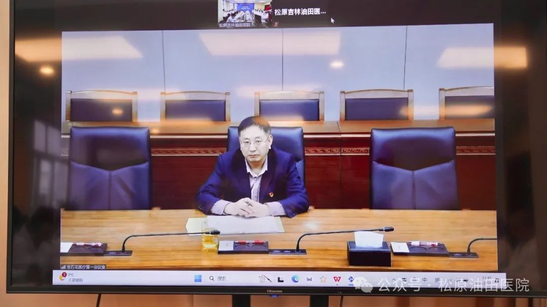 宝石花医疗公司党群部部长史国文通过视频连线参会,并给与指导。医院党委书记韩伟,党委副书记、常务副院长吴优,党委副书记张晨,纪委书记谭怀庆等领导参加会议。