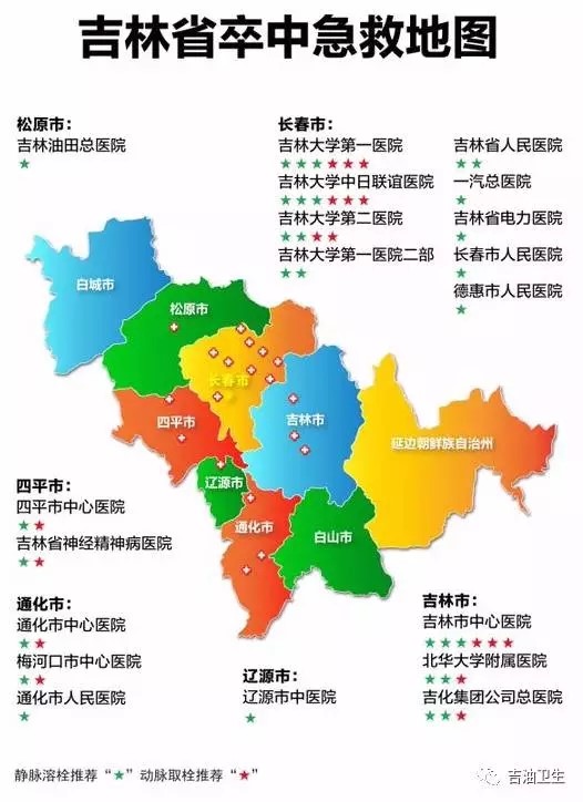 我省目前的卒中救治现状仍然存在低覆盖、低救治、低辐射的状况,大部分患者发病后无法准确判别哪些是能够提供急诊溶栓、取栓治疗的医院,以至于很多患者都错过最佳治疗时间。为了让卒中患者获得更快、更有效的救治,在吉林省卫生计生委的领导和支持下,在吉林省卒中学会的统筹安排下,在多家卒中中心以及120急救系统的共同参与下,吉林省卒中急救地图项目正式启动。通过数据上报、专家评审、领导小组审核,确定了首批入围的18家医院,并细化了溶栓和取栓的推荐级别,在吉林省形成了覆盖2700多万人口的脑血管疾病快速救治网络。