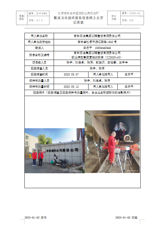 吉林石油集团工程建设有限责任公司职业病危害因素检测报告(ZJ2025-16)