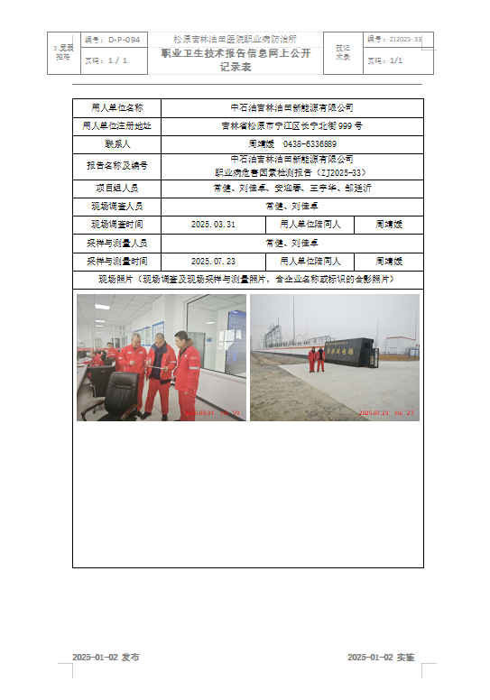 下一篇:中国石油天然气股份有限公司吉林油田分公司油气工艺研究院职业病危害因素检测报告(ZJ2025-37)