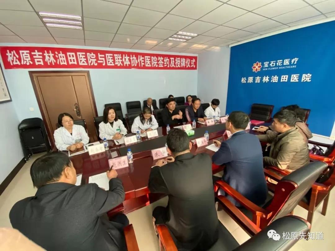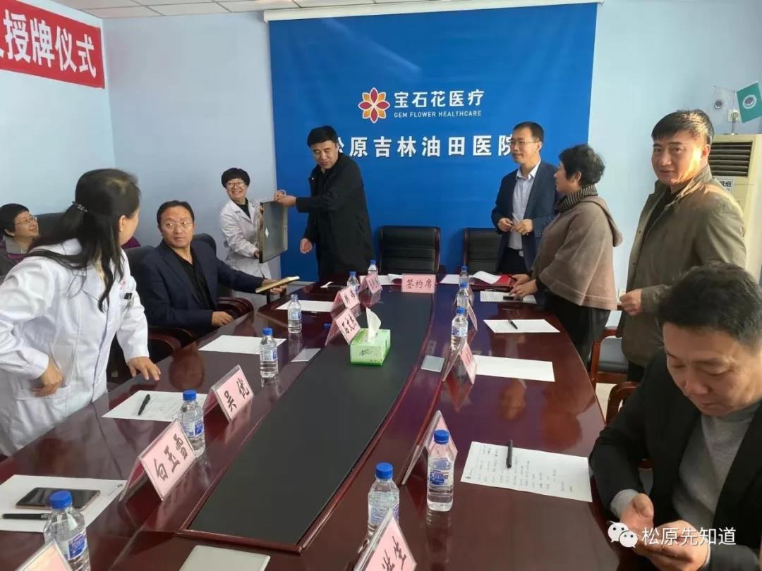 吉林油田医院副院长韩伟、院长助理白玉雪及医务科、门诊部相关负责人参加了签约授牌仪式。