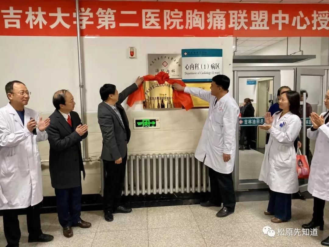 吉林大学第二医院心内科主任刘斌、副主任王智慧和松原吉林油田医院领导石文杰、吴优、易梦秋及医务科、心内一、二科负责人及医务人员参加揭牌仪式。