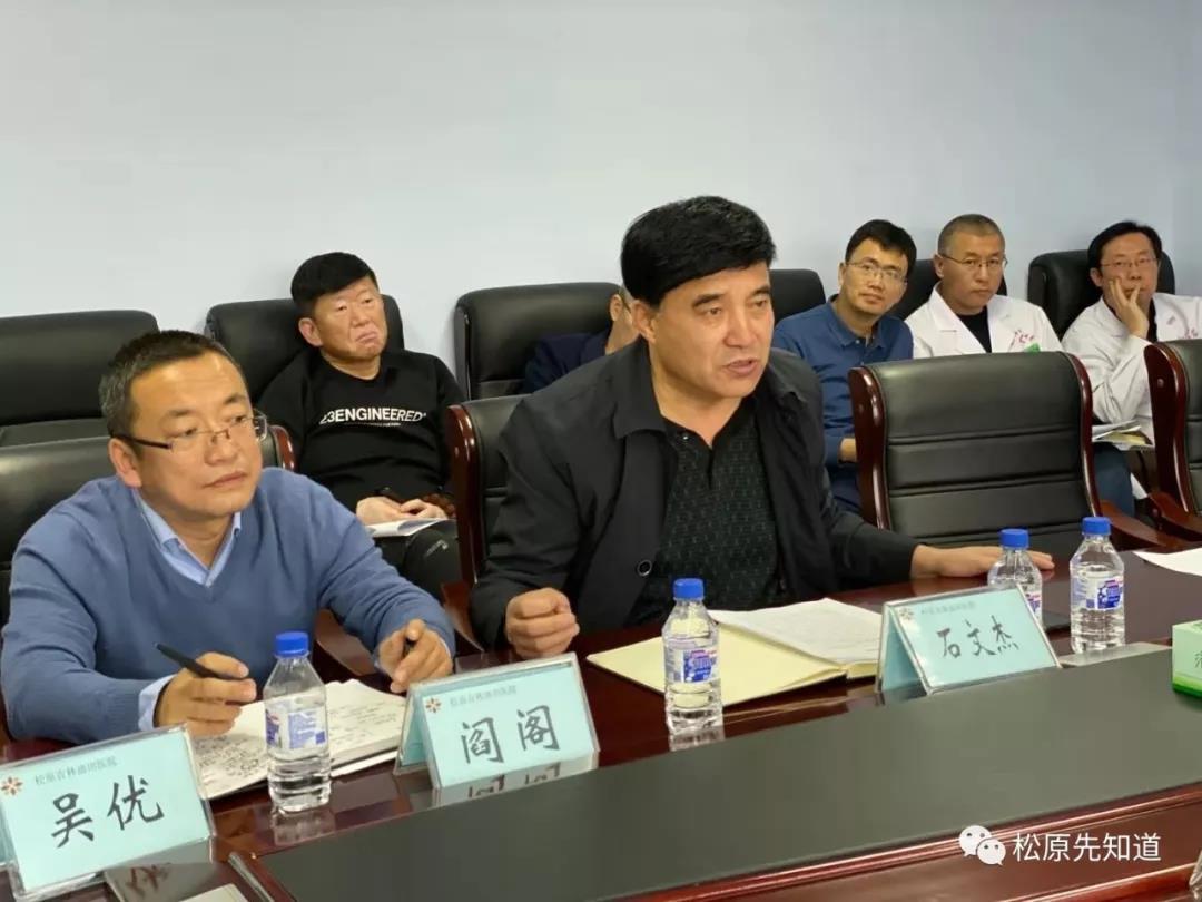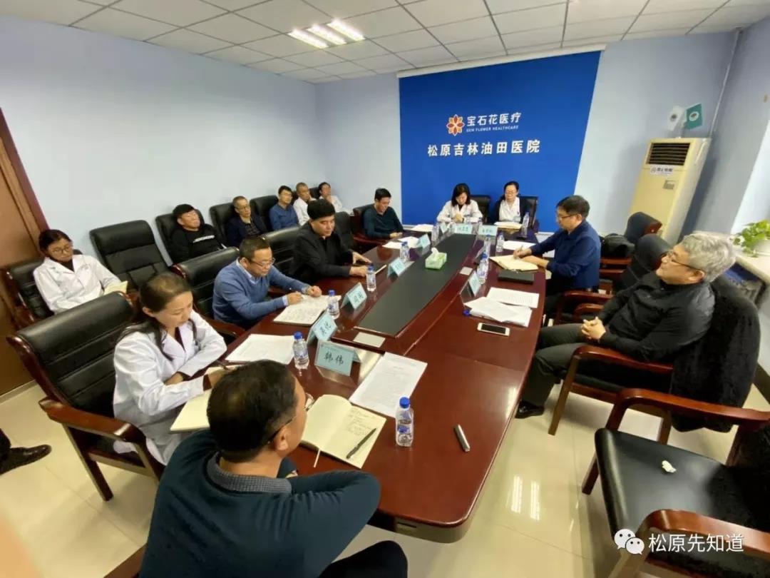 松原吉林油田医院院长石文杰、副院长丰立忠、总会计师阎阁、朱景华、吴优、韩伟、院长助理易梦秋、白玉雪及相关部门参加了调研会。