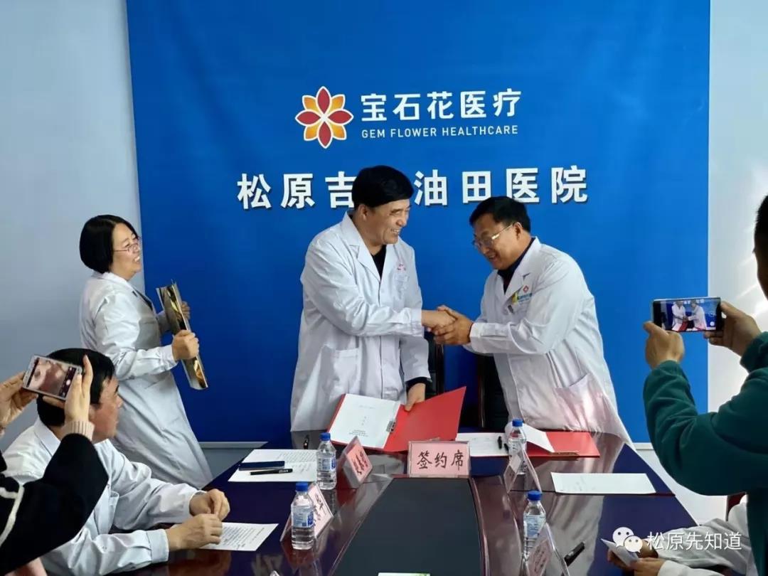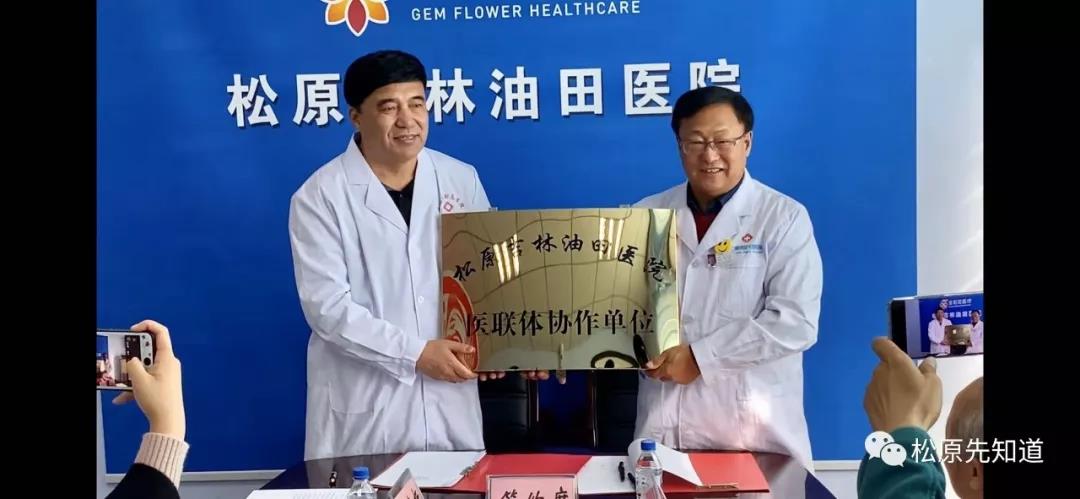 之后,松原吉林油田医院院长石文杰与医联体医院签约并授牌。