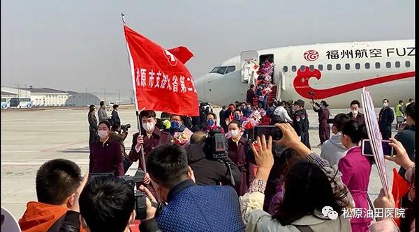 上午8时许,一架载着松原援鄂英雄的客机,穿云破雾降落在松原查干湖机场。松原市委,市政府以最隆重的欢迎仪式迎接队员们回家。