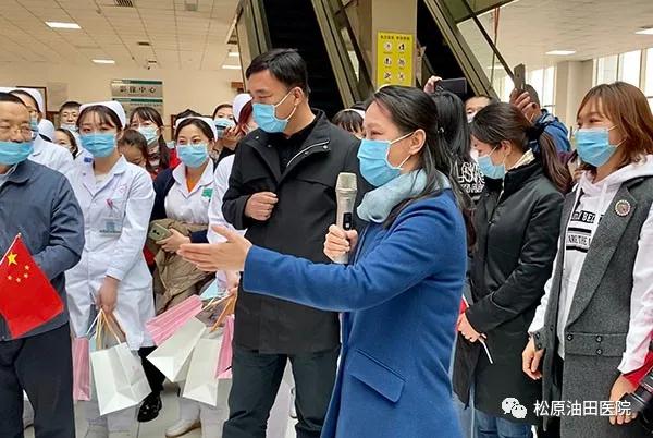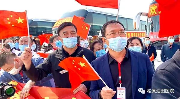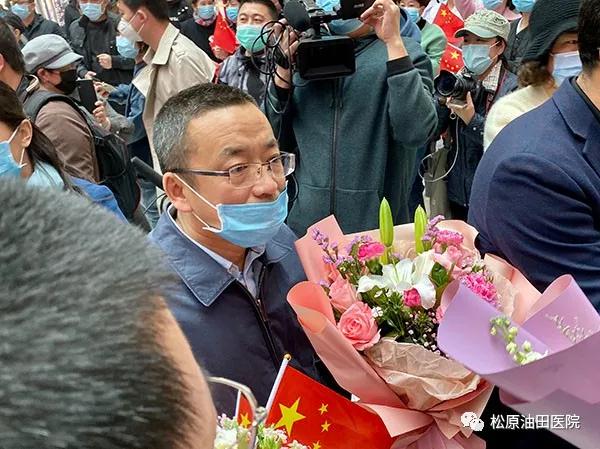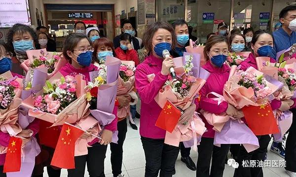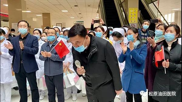 最后,院长石文杰代表院党委做了热情洋溢的讲话,他说:“通过这次抗击疫情,让我们华夏儿女更加团结,你们不仅仅是自己职业生涯当中的骄傲,也是油田医院的骄傲,你们更是松原市全体280万人民的骄傲,你们是华夏儿女优秀代表,祝贺你们凯旋归来!