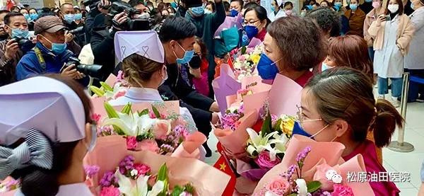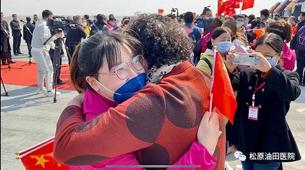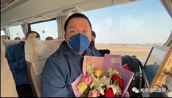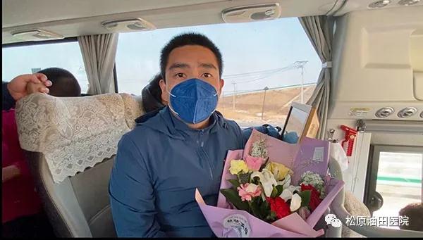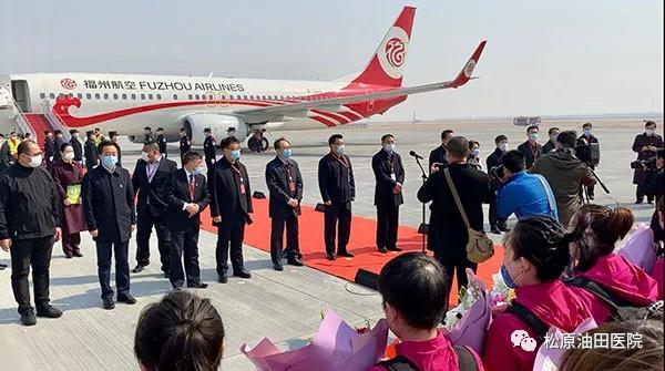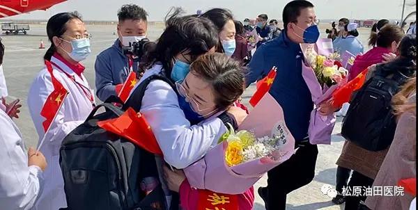 4月6日,松原吉林油田医院11名援鄂医疗队员在长白山结束了14天的集中休整,经各项检测指标符合标准后,与松原市其它医院兄弟队员一道,今天乘包机正式返回松原,与家人团聚。