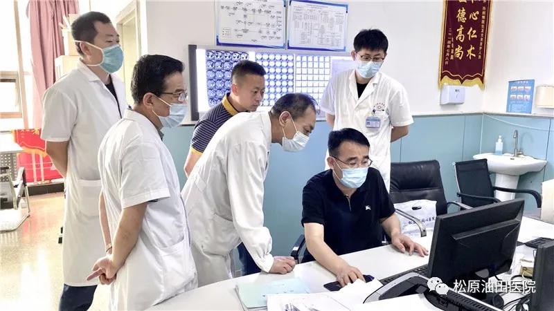 松原吉林油田医院院长石文杰非常关注首例完全腹腔镜下胰十二指肠切除术,并亲临手术室观摩指导。