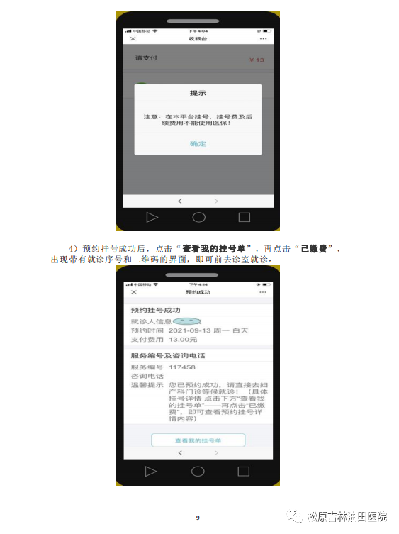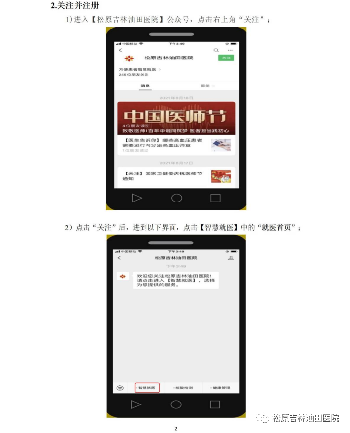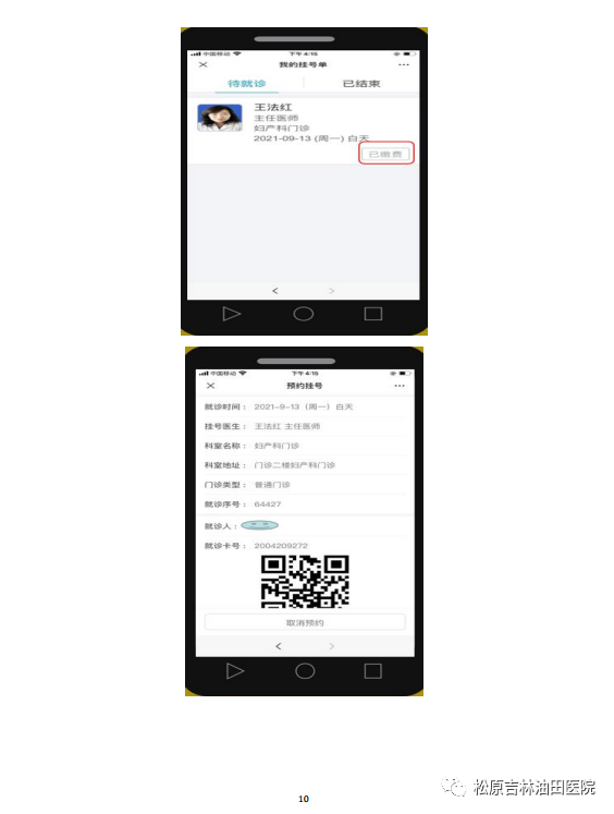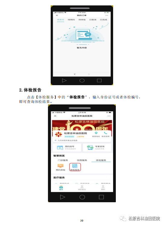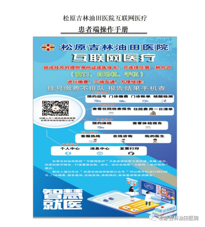智慧医疗 松原吉林油田医院互联网医疗患者端操作手册