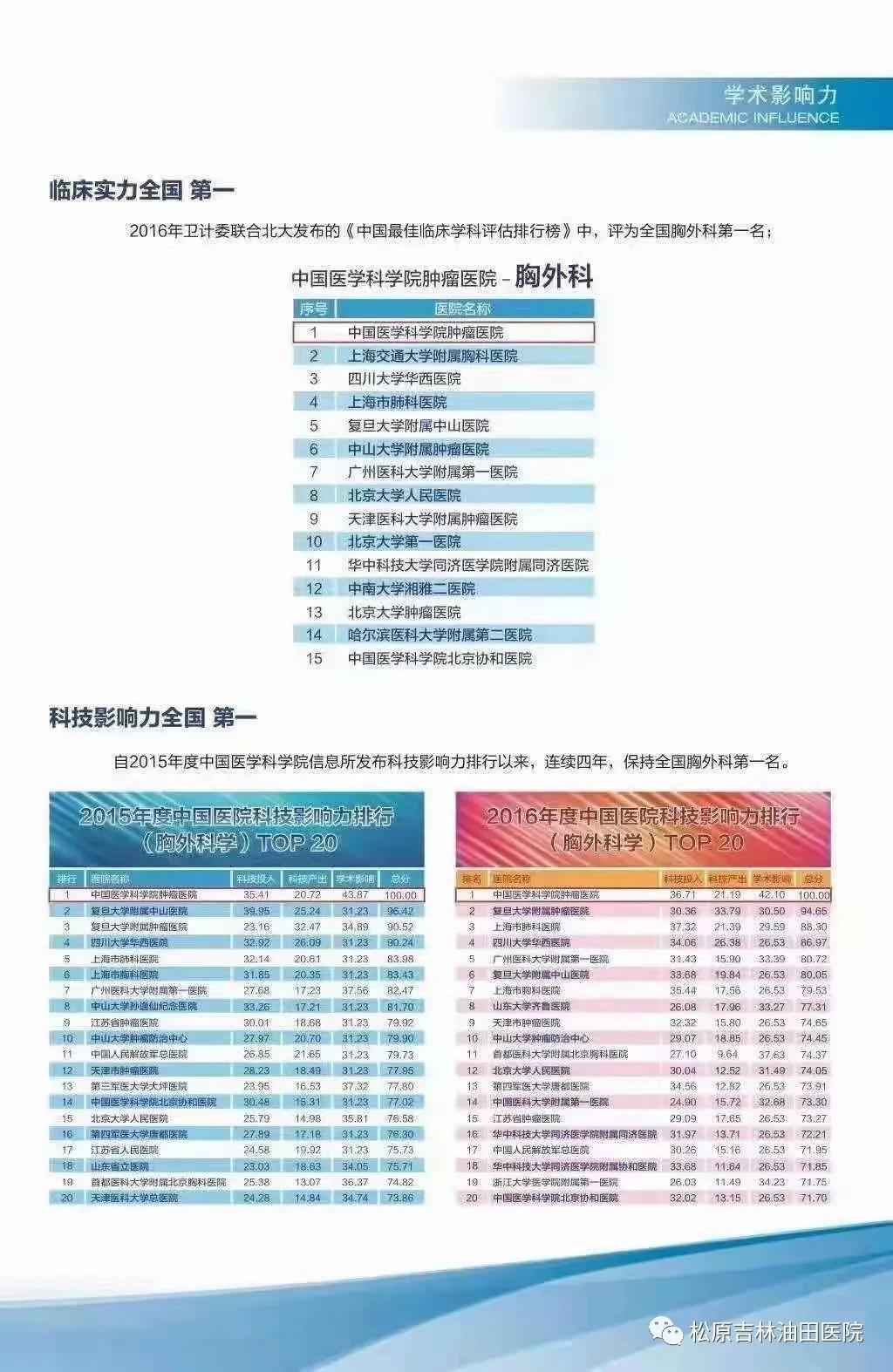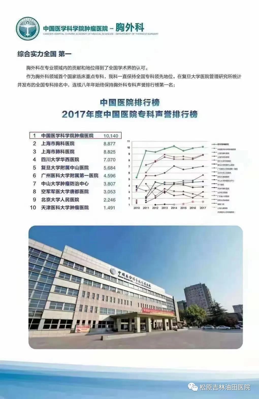 高禹舜教授所在的中国医学科学院肿瘤医院(国家癌症中心)胸外科:临床实力全国第一、科技影响力全国第一、综合实力全国第一。