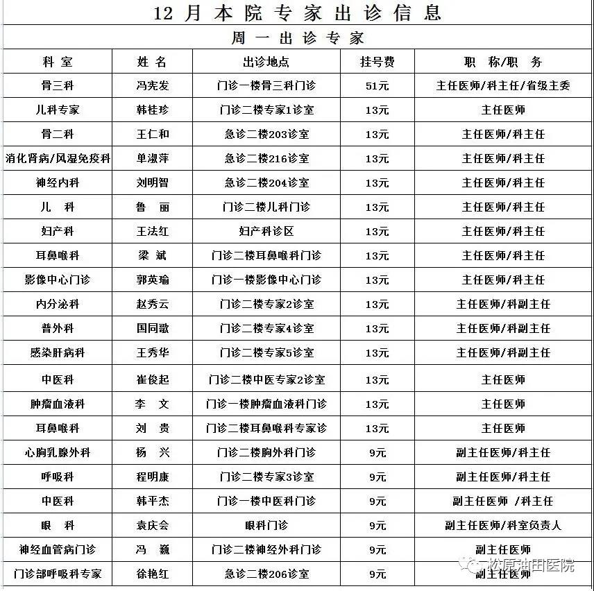 12月专家出诊