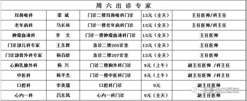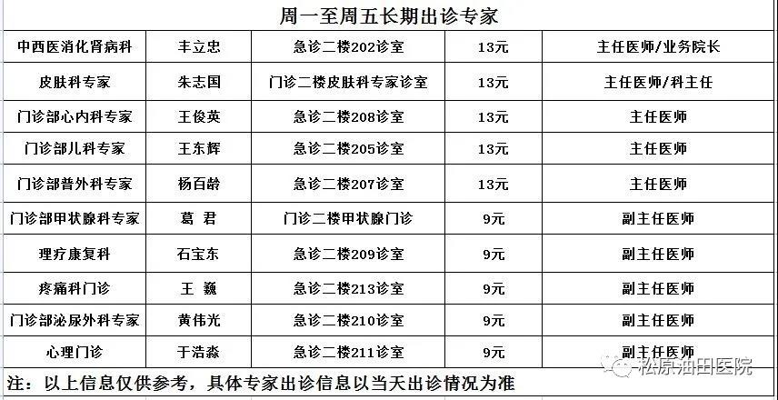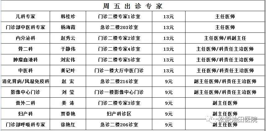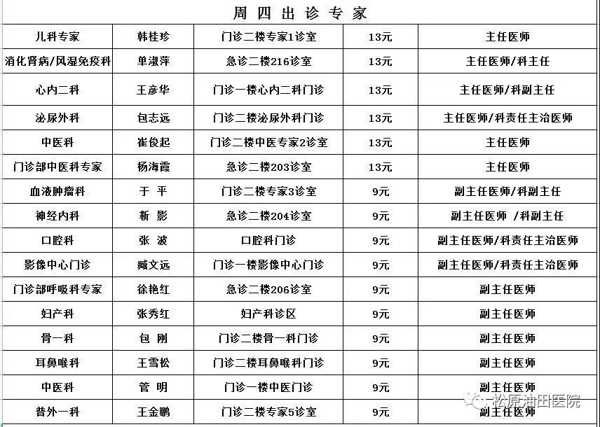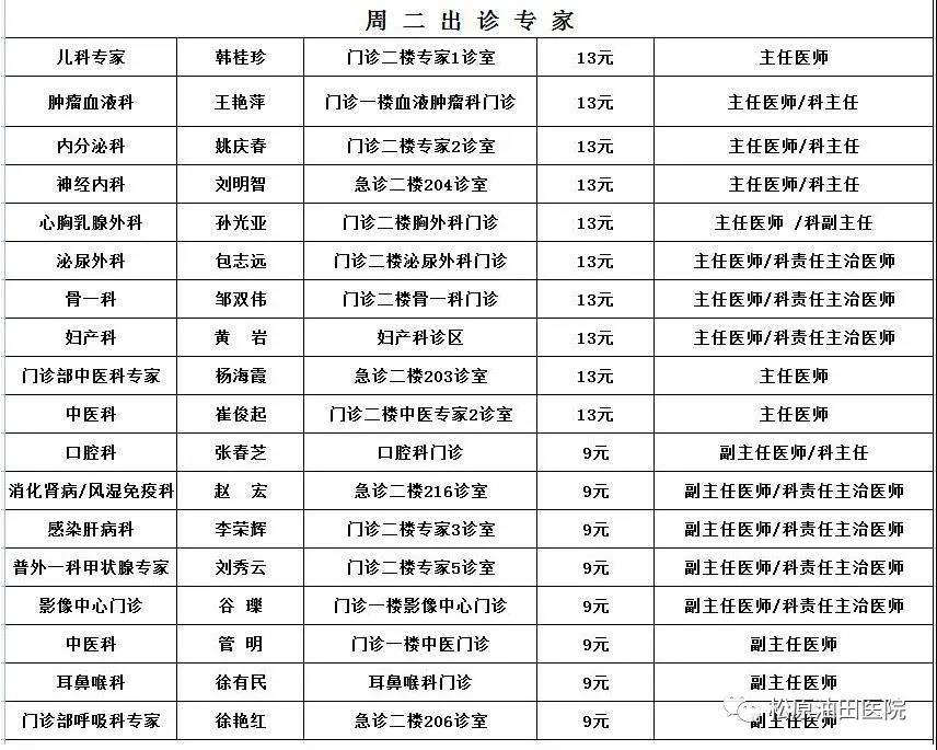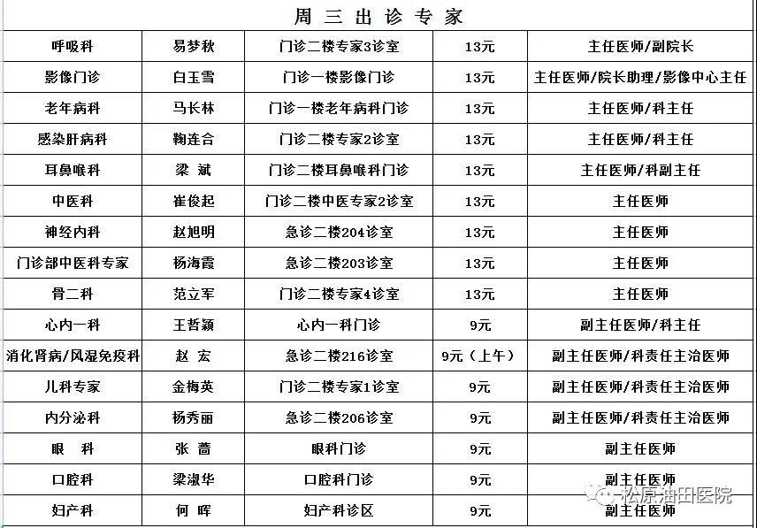 出诊时间表
