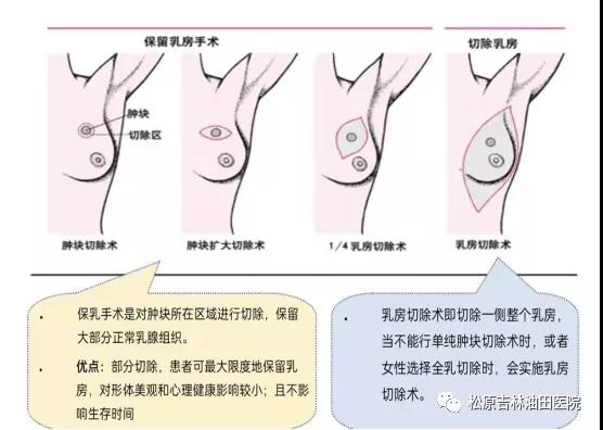 目前临床常用的手术方法包括:乳腺癌改良根治术、乳腺癌保乳手术、单纯乳腺切除术。而乳腺癌根治术、乳腺癌扩大根治术,因其创伤大、并发症多,并未能提高生存率,现已较少应用。