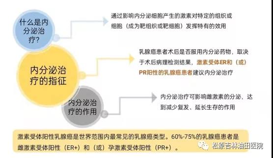 主要是针对经过病理检测,发现乳腺癌细胞对雌激素受体是阳性的,也就是对乳腺癌激素比较敏感的这类乳腺癌患者。乳腺癌患者进行内分泌治疗,虽然是简单的吃药,抑制激素的过程,但往往它对长期控制乳腺癌细胞的发生和发展非常有效。