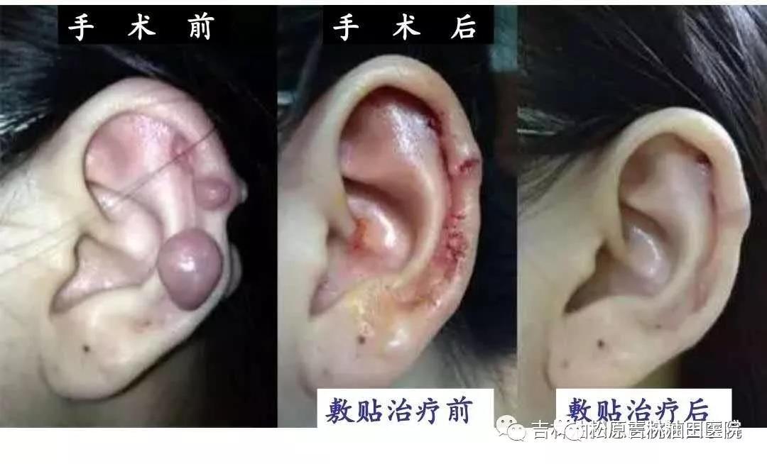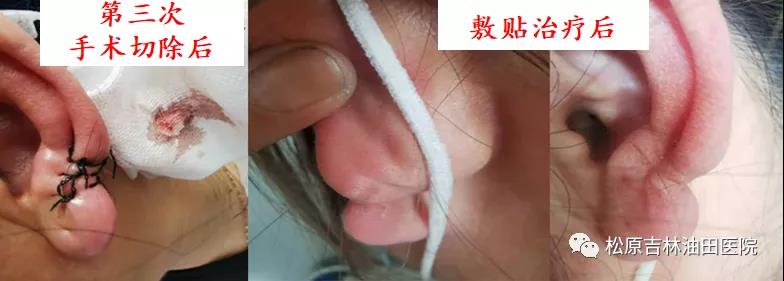 最近,爱美的小蕊打了一排的“耳洞”,可没等戴上漂亮的耳饰,在打耳洞的部位就逐渐出现了红色的小疙瘩,而且疙瘩在不停地长,慢慢的耳廓上长出了多个圆乎乎的肉疙瘩,并伴随着痒、痛,尤其在出汗或者洗澡的时候,用了多种去疤痕的药物不但未见缓解、却有继续增大的趋势.....饱受瘢痕疙瘩困扰的她,来到松原吉林油田医院核医学科,打算采用“锶-90敷贴治疗”的方法。因为小蕊瘢痕疙瘩太厚,单纯敷贴需要较多疗程,这时,核医学科推荐其选择“手术切除 + 锶-90敷贴” 的综合治疗方案,可明显降低二次复发的几率。小蕊首先进行了瘢痕疙瘩的局部切除术,随后来核医学科进行“锶-90敷贴治疗”,治疗后效果非常理想。下图是小蕊治疗前后对比图。