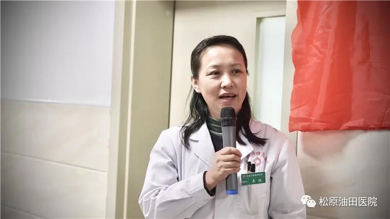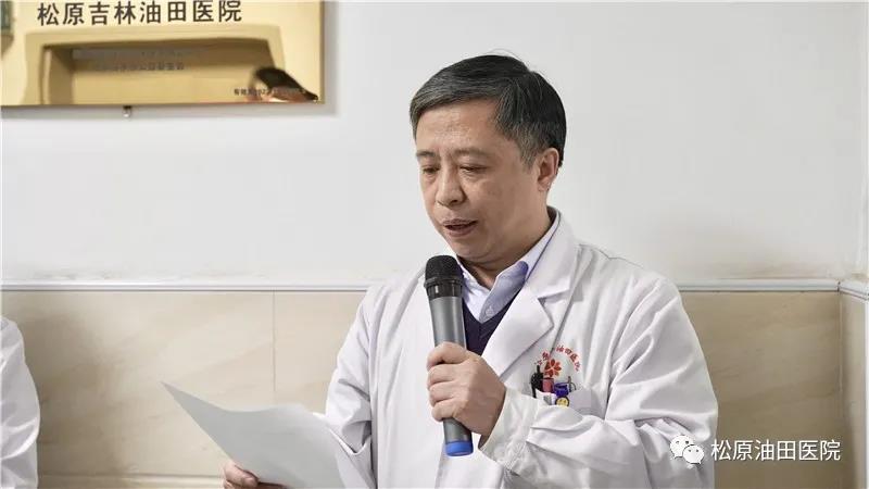 松原吉林油田医院眼科主任袁庆会主持揭牌仪式。