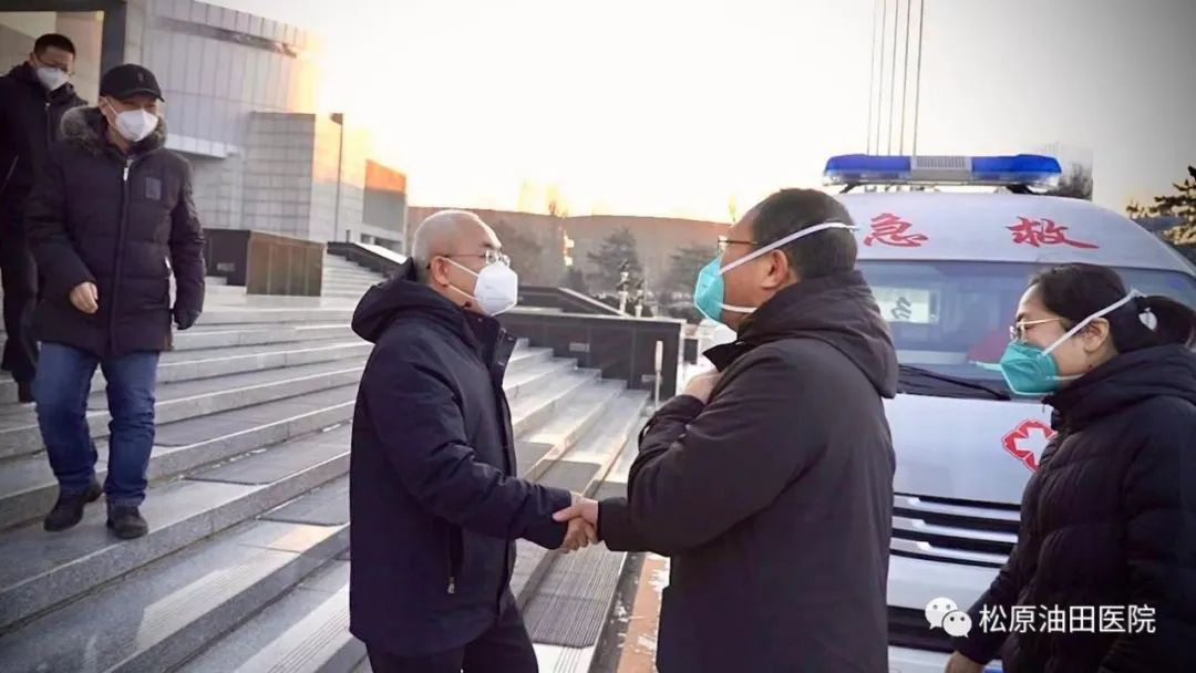 吉林油田公司安全处处长司晓军、副处长闫立凯热情迎接,司晓军代表吉林油田公司领导和全体职工对医院领导和全体职工表示感谢。他说:“医院改革三年,始终没有忘记油田公司,关键时刻总是冲在前边,时时刻刻守护着油田公司干部职工的身体健康和生命全,疫情三年充分证明了这一点,我们血脉相连,始终是一家人。在这个特殊的时期里,你们雪中送炭,又为我们送来了急需的药品,非常感谢!”