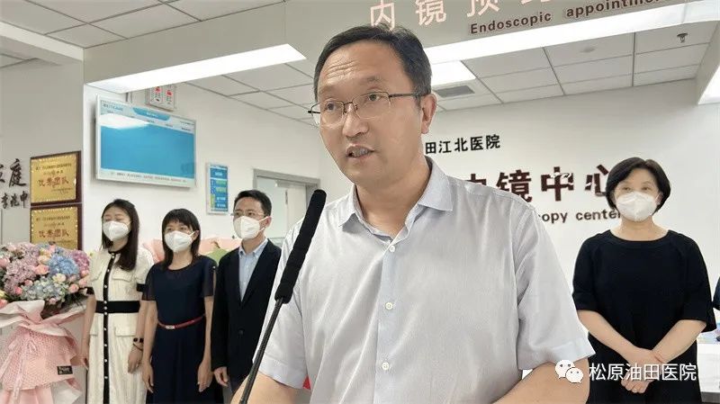 吉林大学第一临床医院邬巍副院长、胃肠内科内镜中心徐红主任、外联工作部赵莹主任、外联工作部李宜轩副主任、外联工作部鲍龙洋干事、松原吉林油田医院党委书记、院长韩伟、副院长吴优、江北医院院班子成员及全体医护人员参加仪式。