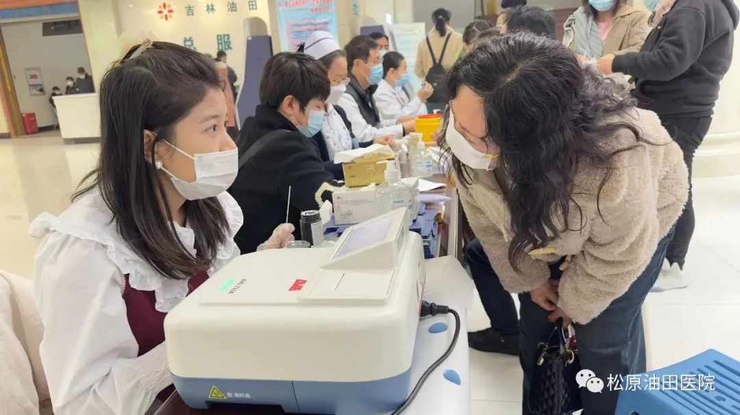 为了提高公众对糖尿病的重视,松原吉林油田医院内分泌科于2022年11月11日在吉林油田医院门诊大厅举办了一年一度的大型糖尿病义诊活动。