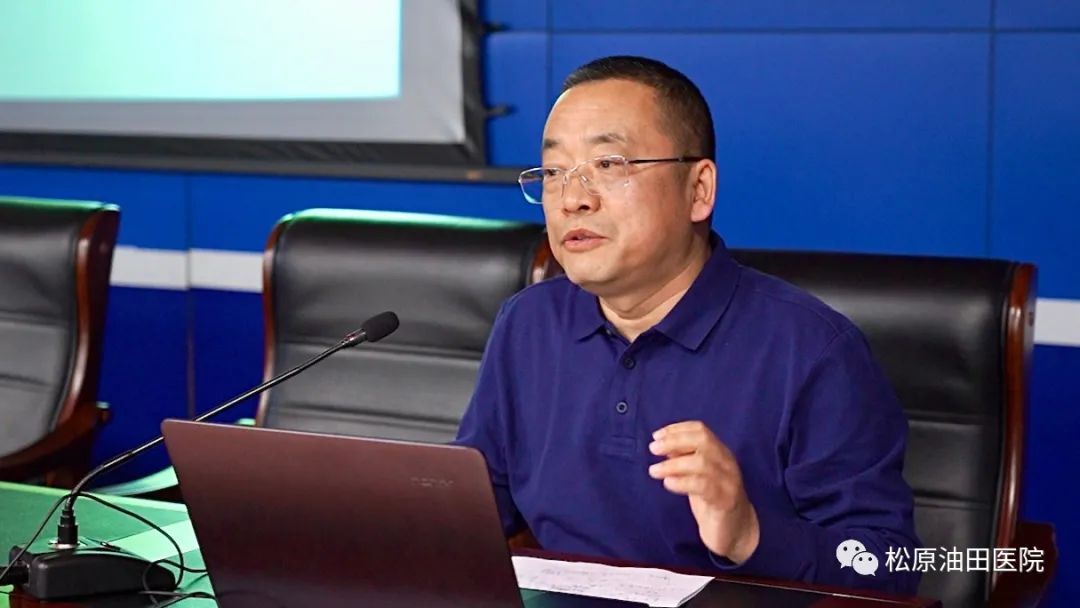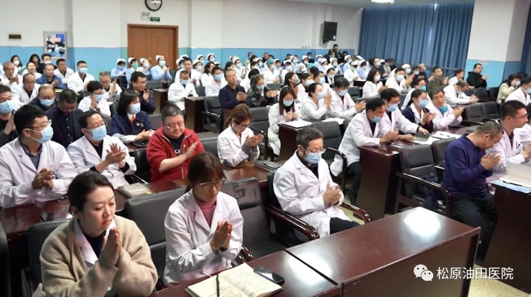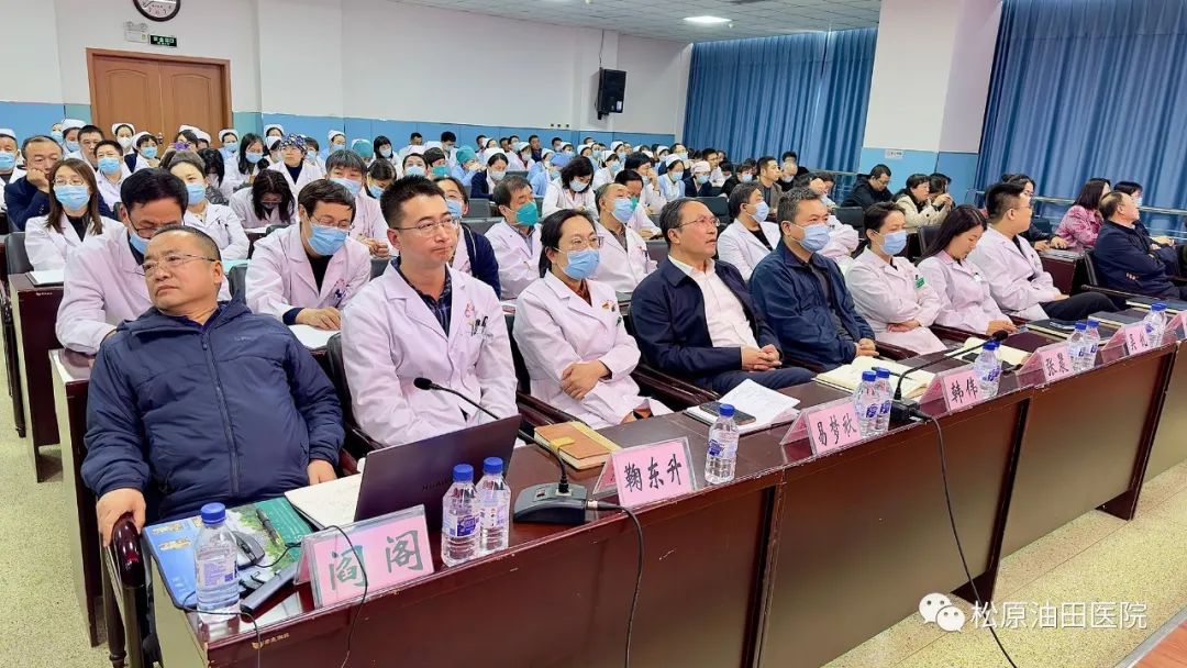 阎阁主持会议。院领导张晨、吴优、易梦秋、白玉雪、院长助理苏锴、鞠东升参加会议。宁江吉林油田江北医院领导班子成员,两院临床、医技、护理负责人,机关职能科室长共160多人参加会议。