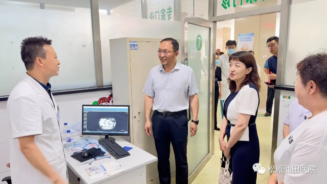 油田医院领导陪同赵莹主任等到各专家义诊诊室查看走访。