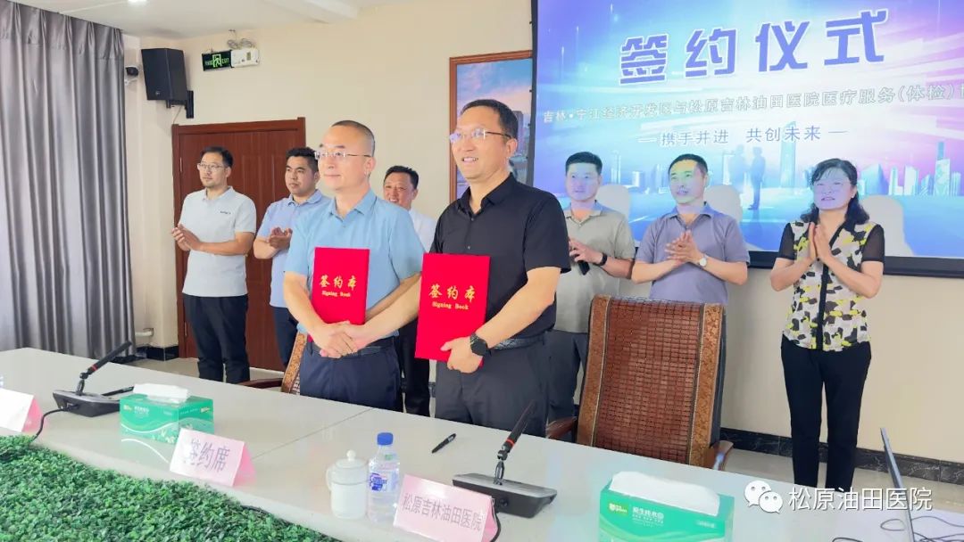 在所有现场工作人员共同见证下,松原吉林油田医院与宁江经开区签订了医疗服务协议。