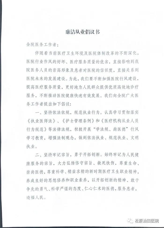 廉洁从业倡议书